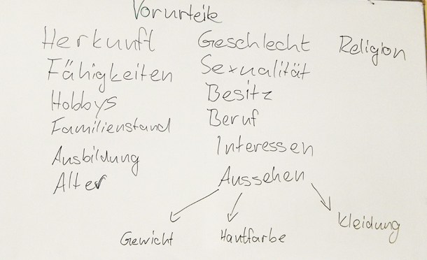 „Manchmal ist es schwierig, ein Mädchen in Brasilien zu sein, weil Mädchen da weniger Chancen haben“, berichtet die 16-jährige Joana. Andere Schüler nicken—das sei bei ihnen in ihren Ländern auch der Fall. Joanas Kommentar führt zu einer Diskussion über Diskriminierung: Rassismus ist lange nicht der einzige Grund, wieso es Vorurteile gibt.