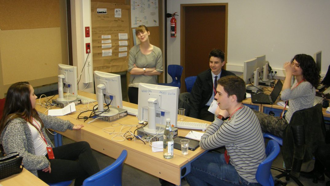 Kurz nachdem Allison, Frau Hopkins, Frau Bergmann und ich im Berliner Flughafen ankamen, saßen wir im Redaktionszimmer des PASCH-net-Reporterteams und bereiteten uns auf unsere journalistischen Aufgaben vor. Trotz der Müdigkeit waren Allison und ich gespannt, an der Konferenz als Beobachter und Reporter teilzunehmen.