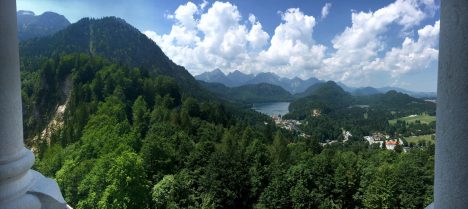 Die Aussicht von Schloss Neuschwanstein – ein Blick auf das Allgäu und die Alpen, Foto: Nils Bergmann
