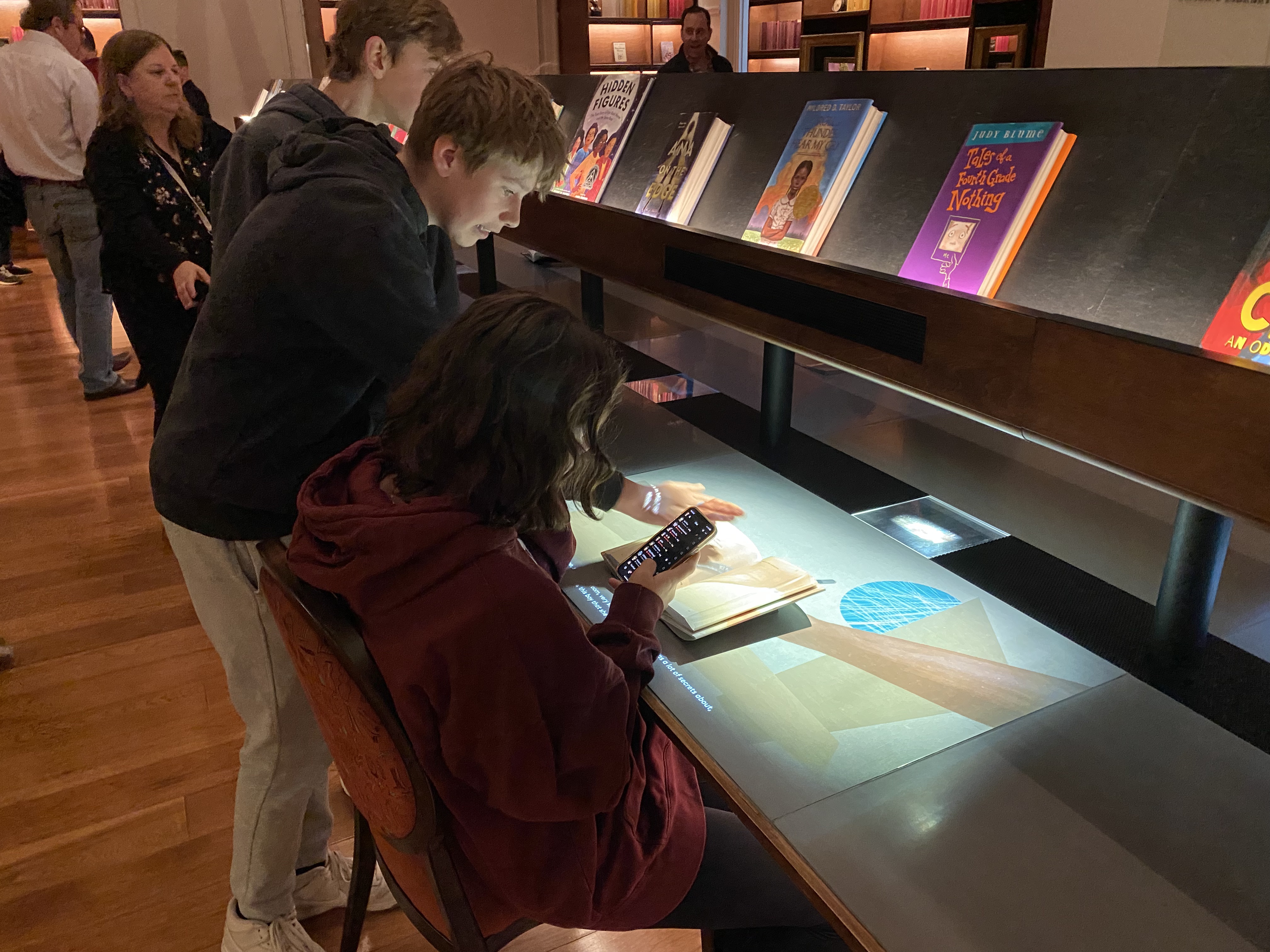 Mir hat die Bücherei am besten gefallen. In der Bücherei konnte man sich ein Buch nehmen und es erschienen Wörter und Bilder, wenn man es auf einen Tisch legte. Dazu hörte man auch eine Stimme, die aus dem Buch las. Diese Bücherei ist eine sehr kreative und interessante Idee.