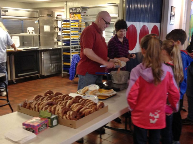 Jedes Kind mag sich in der Pause eine Brezel oder eine Wurst holen. Die traditionell gemachten Spezialitäten sind oft am Ende des Schultags ausverkauft. Foto: Phillip Reeves