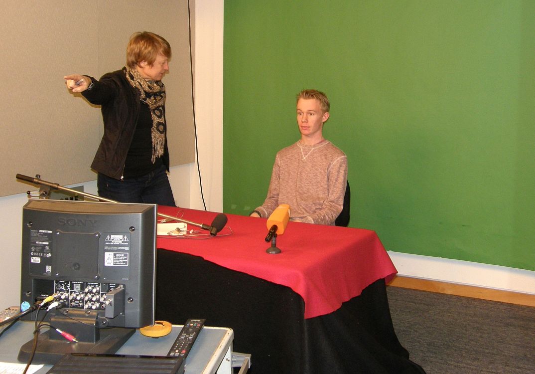 Dominic bekommt Tipps von ZDF-Senior Producerin Annette Brieger für den Kamera-Auftritt Foto: Christina Bergmann